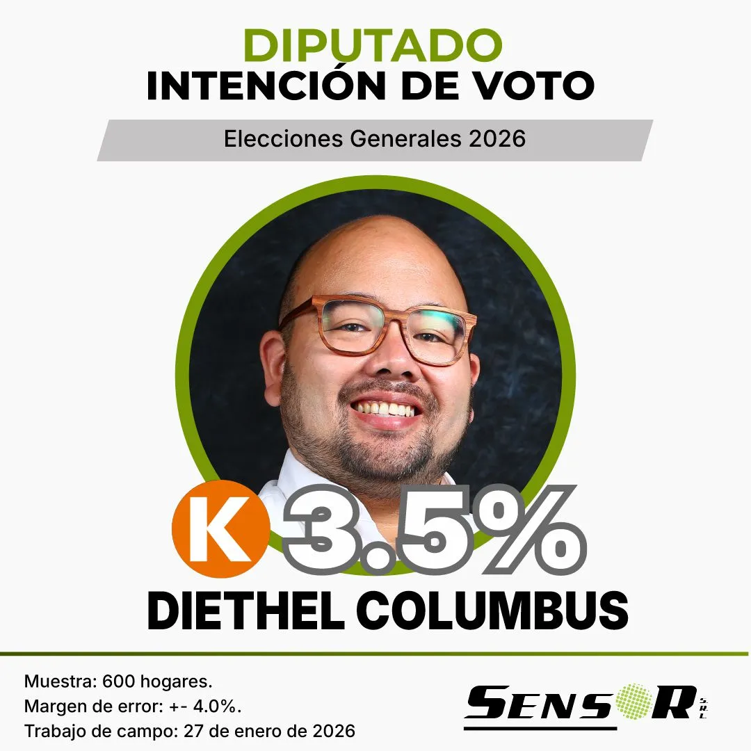 Según los resultados del estudio, Diethell Columbus lidera la intención de voto con 3,5%, seguido por Norma Yarrow y Adriana Tudela, ambas con 3,3%. A continuación se ubican Harvey Colchado (2,8%) y Marie Ayasta (2,7%), conformando un primer grupo de candidaturas con mayor nivel de recordación.